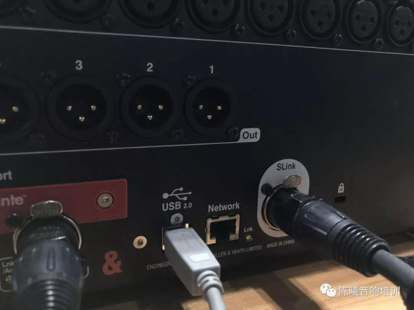 用网线连接调音台和个人监听器,网线的一头插入SQ调音台的SLink 网口。