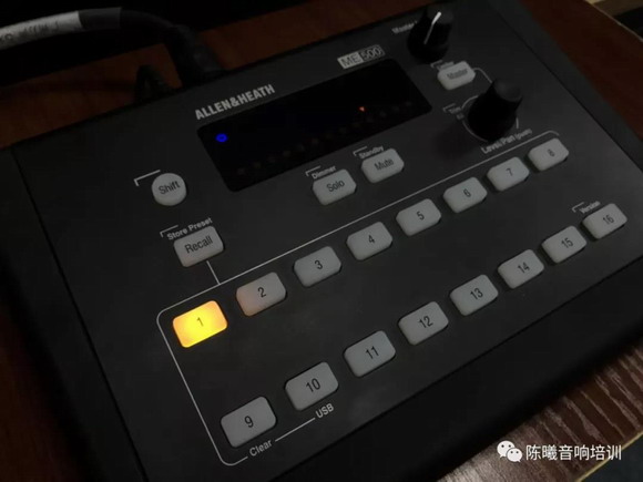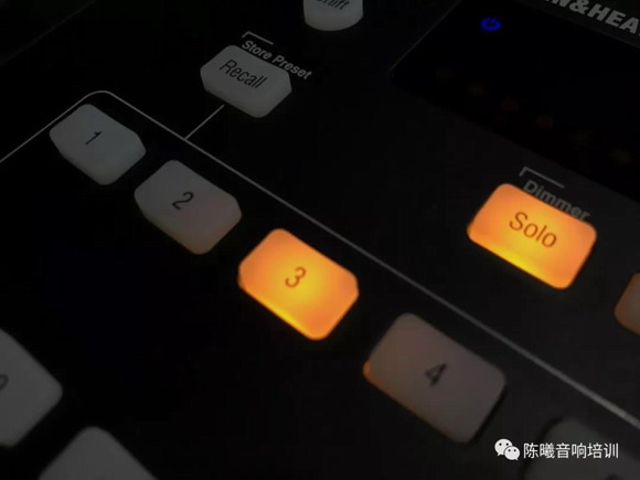 想听哪个通道的信号就先按亮通道选择键,比如底鼓是在第1路,现在想听底鼓,就按亮通道1号的按键。