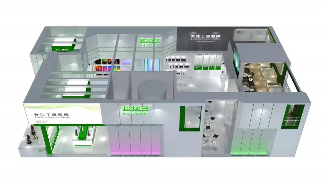 本次展会,超频三展馆形象全面焕新,整体设计风格简约大方,以清新绿为主色调,搭配时尚灰与白,融合智能科技等元素,按照不同的业务细分布局设置了体育照明、太阳能照明、教育照明、渠道照明、智慧杆等主题展区,着力营造体验式照明情景,优化创新的展位格局,配以美观时尚的灯具设计,完美呈现超频三照明的绿色节能理念。