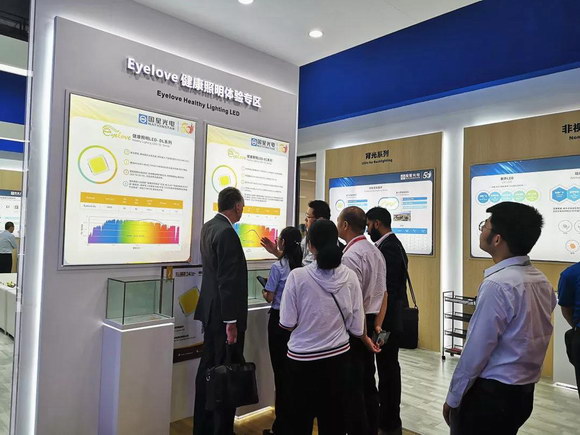展会上的另一大亮点莫过于集多项荣誉于一身的Eyelove™健康照明LED。国星光电展位全场灯具均采用Eyelove™ LED,为逛展劳累的您提供舒适、健康的光环境。展位上还特别设置Eyelove™ LED体验专区,让您足不出户却能感受太阳光的明媚和降低短波蓝光的舒适,将健康的太阳光搬进室内,让眼睛“目浴”阳光,尽享健康。