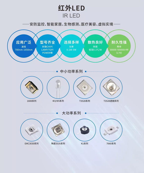 非视觉光源是国星在细分领域上的一大突破。此次展会,重点展出了三大领域的产品,分别为紫外LED、红外LED和动植物光照LED。在紫外LED领域,国星已全面布局,陆续推出近紫外LED、深紫外LED及模组产品,广泛应用在杀菌、光疗、固化、光触媒、植物生长、诱蚊、美甲等领域。国星红外LED主要应用与安防监控、智能家居、生物感测、医疗美容、虚拟实景等方面。国星动植物照明LED产品覆盖从可见光到紫外、红外的连续光谱,兼容性强,实现了动、植物需求的多种光谱集成于一体的方案,适用于大多数动、植物的生长需求。