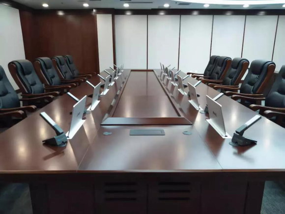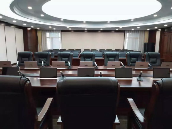 音桥严格按照开发区会议室的会议设计要求,结合会议室的建筑结构及相关设计标准进行设计,选用了一体式的无纸化会议终端。