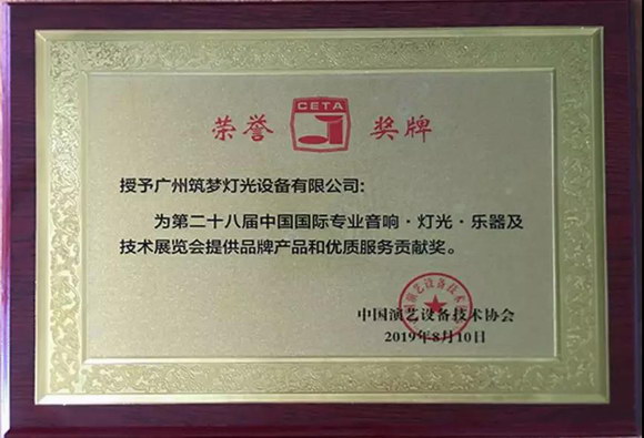 此次评选活动,旨在追寻中国演艺设备产品技术的发展轨迹,表彰做出卓越贡献的演艺设备企业及优质品牌,以引导更多演艺设备企业树立品牌意识,提升中国演艺行业的整体水平,推动中国演艺装备行业发展和中国文化艺术的繁荣发展。筑梦灯光一直以来以“创筑梦品牌,造世界专业舞台灯光”为企业理念,不断创新发展,未来我们将继续为合作伙伴提供优质的产品和技术服务方案。