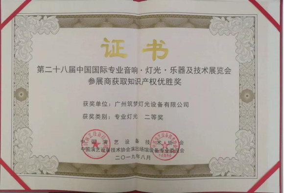“知识产权优胜奖专业灯光二等奖”