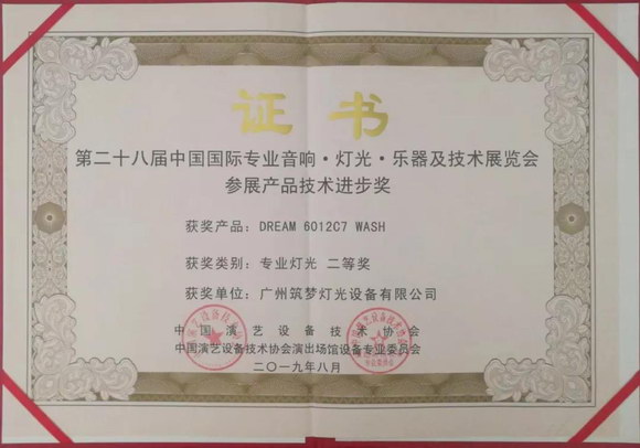 ▲“DREAM 6012C7 WASH专业灯光二等奖”