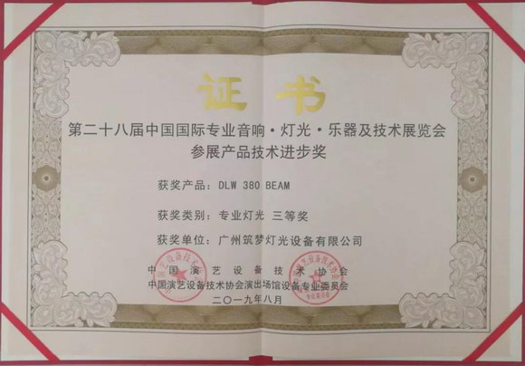 PALM展产品技术进步奖采用了现场演示、评审的方式,评审会邀请了柳得安、陈国义、王京池、林宏恩、潘云辉等多位国内专业灯光领域权威专家担任评委。筑梦灯光的参评产品DREAM 6012C7 WASH、 DLW 380 BEAM、DRAM 1200LP凭借灯具自身优异的产品性能,在众多参展产品中脱颖而出斩获此奖。