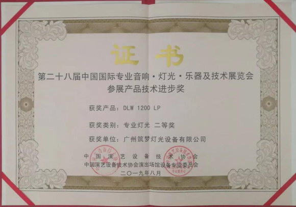 ▲ “DLW 1200PL 专业灯光二等奖”