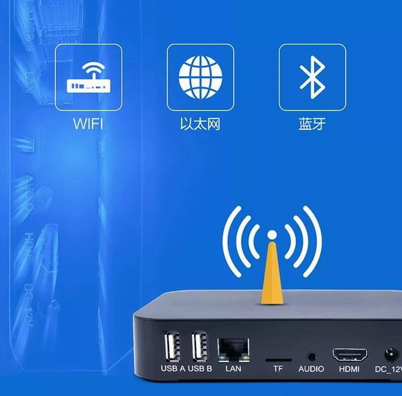 Mbox-40A云信息发布盒支持AP6181(WIFI),AP6236(WIFI+BT),以及1路100M以太网。