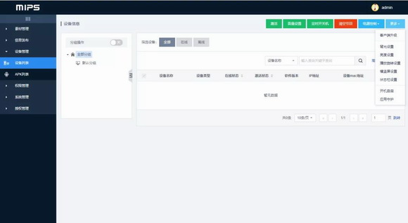 同时可基于MIPS信息发布软件实现对设备的远程管理,包括远程开关机、音量调节、播放旋转设置、横竖屏设置、亮度设置、背光设置、状态栏设置、远程客户端升级等。