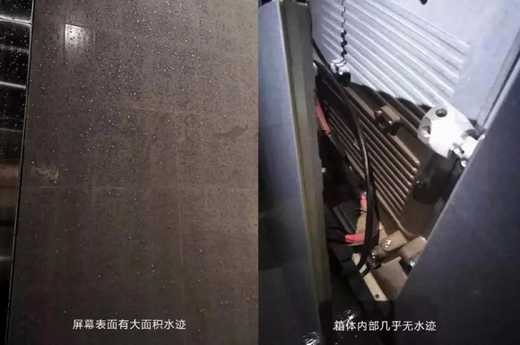 安装工程师即刻在现场拆下模组进行检查,经排查,告知监理、校方及施工单位,经过“洗礼”的箱体内部并没有明显水迹,而屏体表面的水渍,用抹布拭擦干净即可。