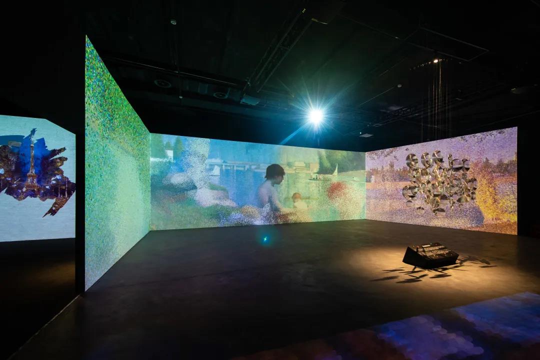 曲面屏及地面重构尚·弗朗索瓦·米勒《祈祷》、乔治·修拉《大碗岛星期天的下午》