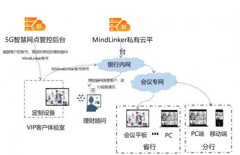 视频会议系统与银行业务前段系统打通融合,结合硬件配置,形成整体解决方案。