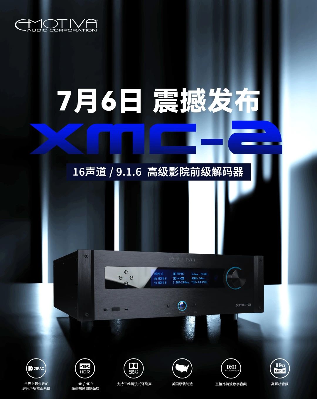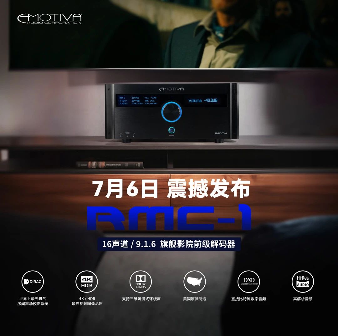 而与之对应,高品质声音的传递,也为大家带来了更为沉浸式的极致视听体验。在本次的新品发布中,针对“家庭影院”的产品尤为亮眼,也让人感知到,Emotiva不仅仅只是埋头于单纯音响设备,而是更在乎人们对于影音生活娱乐的需求,致力于成为高端潮流生活的引领者。