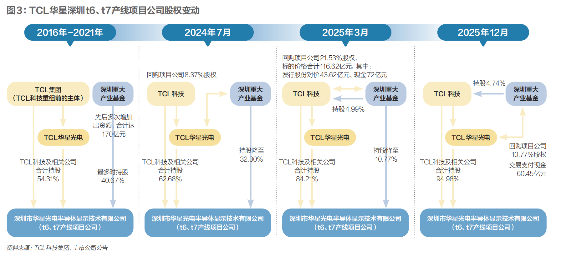 2024年-2025年,TCL分三次收购深圳市重大产业发展一期基金持有的t6t7股权,国有资本实现稳定退出。这标志着这个跨度十年的大型制造业投资项目,完成了从立项、融资、建设、爬坡达产到产业资本退出的周期闭环。